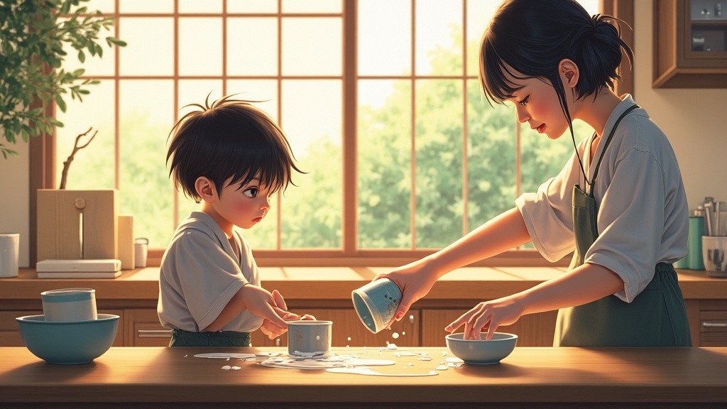 Khi một đứa trẻ 5 tuổi đổ nước ra ngoài ly, phản ứng điển hình của cha mẹ Nhật không phải là quát mắng hay vội vàng lau dọn thay con. Thay vào đó, họ sẽ bình tĩnh hướng dẫn: “Con thấy nước đổ ra ngoài rồi phải không? Bây giờ con nghĩ mình cần làm gì?”. Sau đó, họ chỉ cho trẻ biết khăn lau ở đâu và để trẻ tự xử lý. Quá trình này tuy mất thời gian hơn so với việc người lớn tự làm, nhưng nó dạy cho trẻ hai bài học quan trọng: thứ nhất, hành động của mình có hậu quả; thứ hai, mình có khả năng tự sửa chữa sai lầm.
